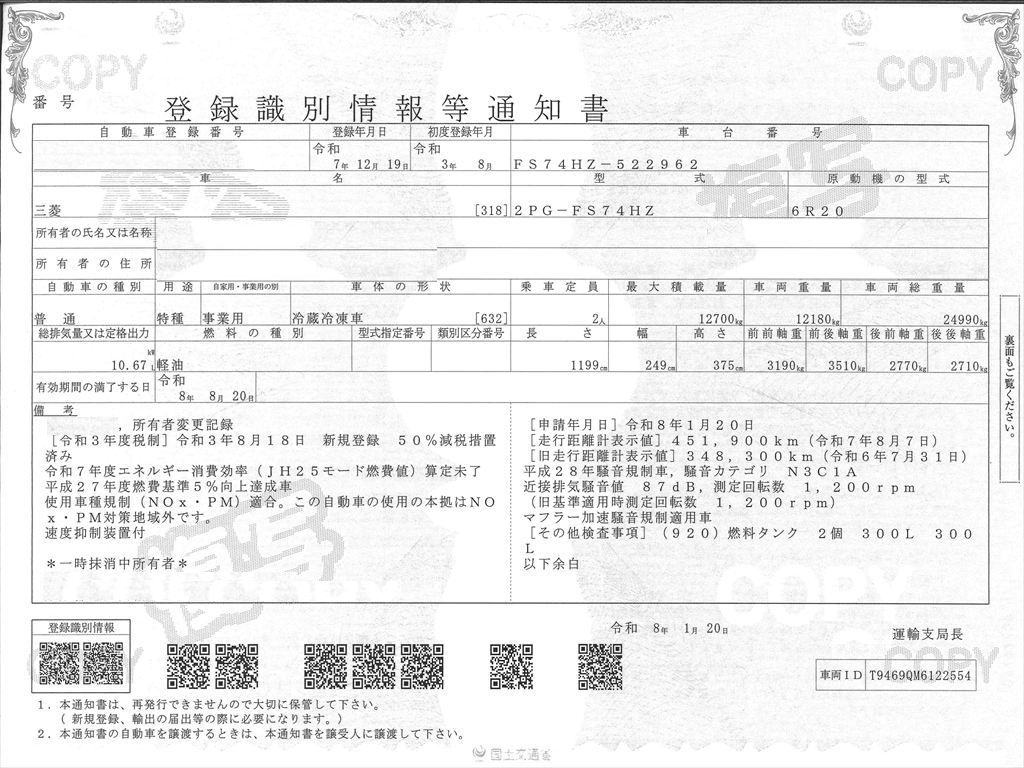 三菱ふそうスーパーグレートの入庫です