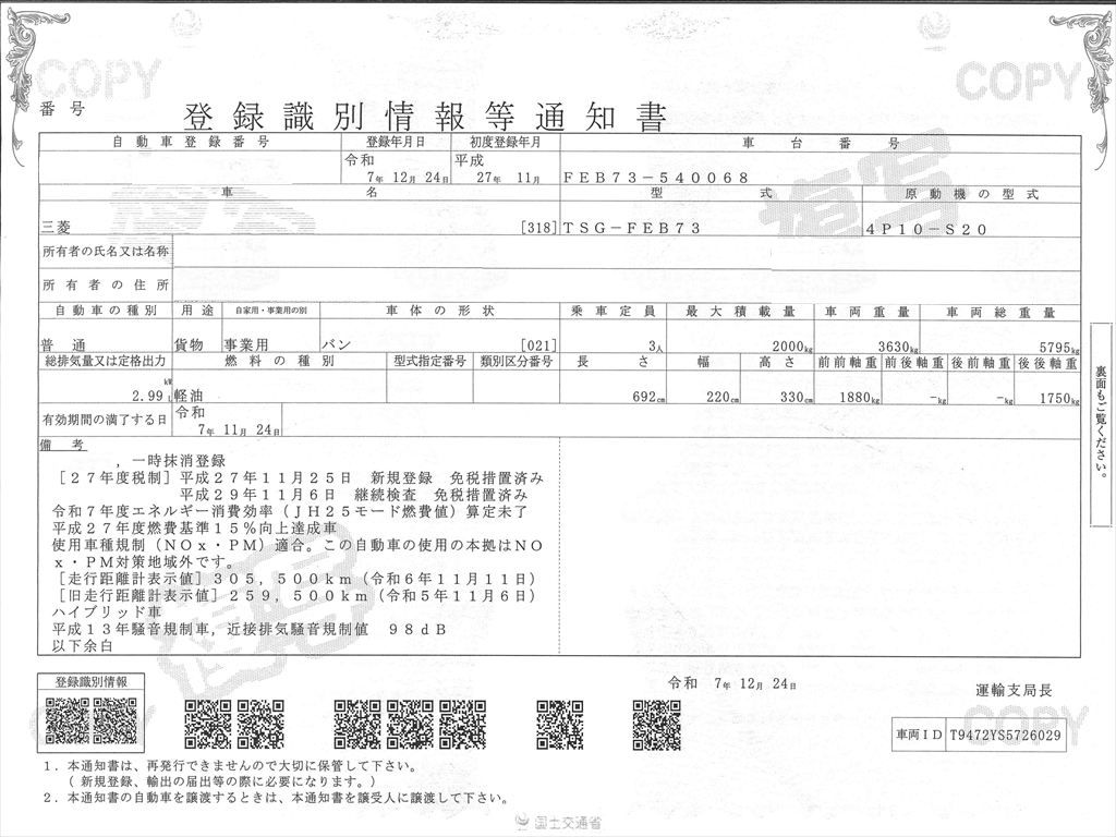 車検証寸法:長さ704cm 幅219cm 高さ313cm