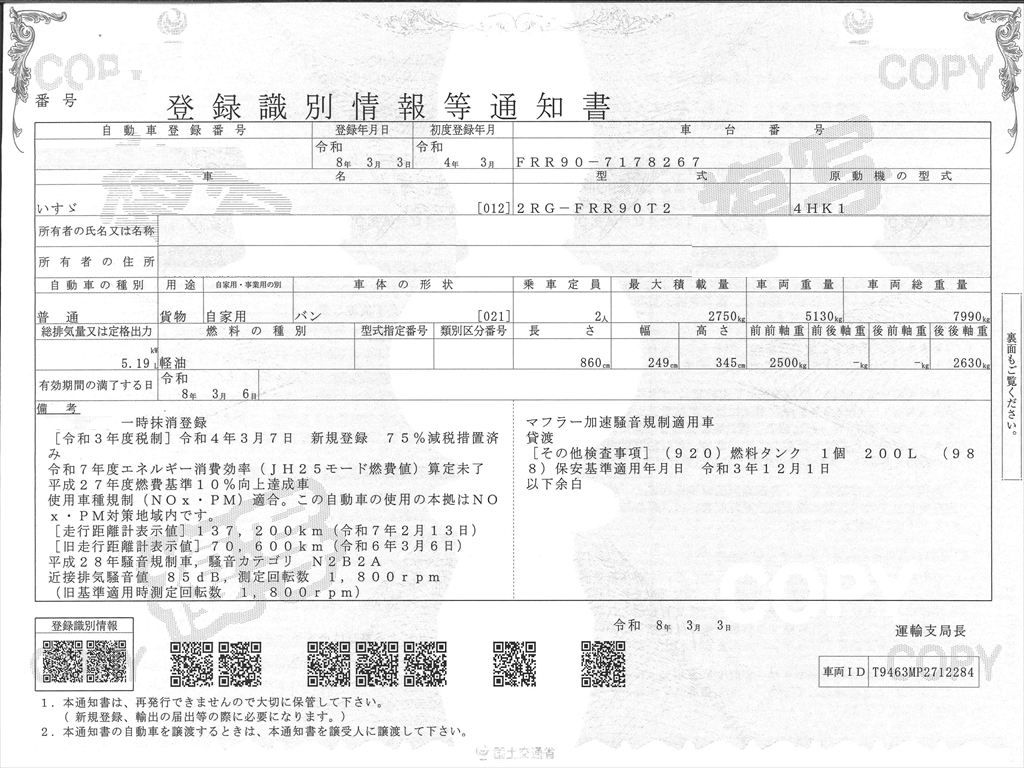 ●走行メーター管理システム検査済