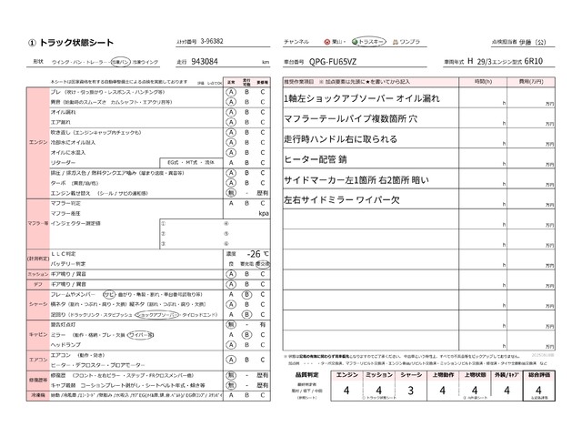 | ミッション | 新車の状態に近い | 良好な状態 | 目立った問題点がない | 日常使用は可能と判断 | 使用上、修理推奨 | 使用上、修理必須 |