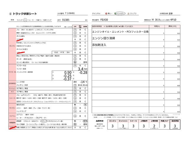 | キャビン | 小傷程度 | きれいな状態 | 多少の傷・凹み | 機能上問題なし | 一定の修理推奨 | 検査基準に該当しない |