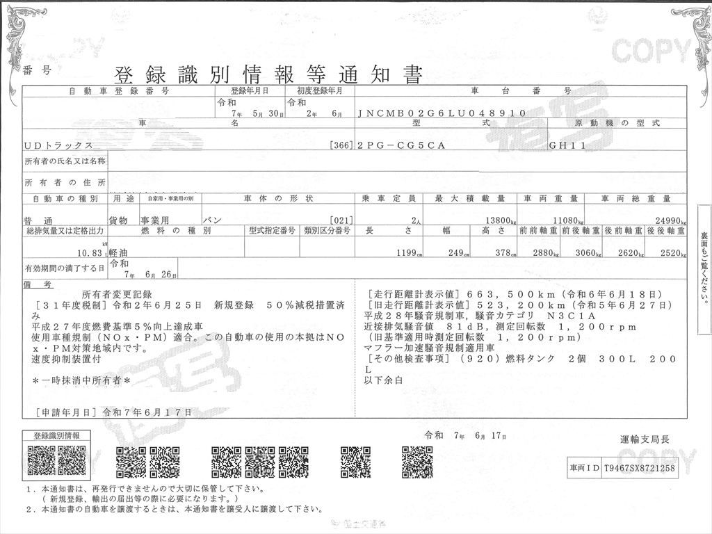 ●走行メーター管理システム検査済