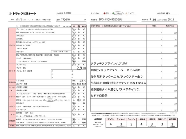 | ミッション | 新車の状態に近い | 良好な状態 | 目立った問題点がない | 日常使用は可能と判断 | 使用上、修理推奨 | 使用上、修理必須 |