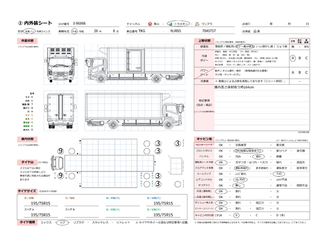 | キャビン | 小傷程度 | きれいな状態 | 多少の傷・凹み | 機能上問題なし | 一定の修理推奨 | 検査基準に該当しない |