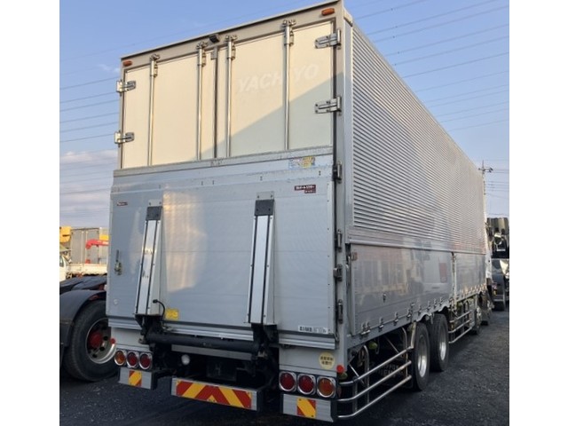 H31年 クオン 4軸2デフ アルミウイング ハイルーフ 新品格納パワーゲート付 リアエアサス アルミホイール エスコット- 積載